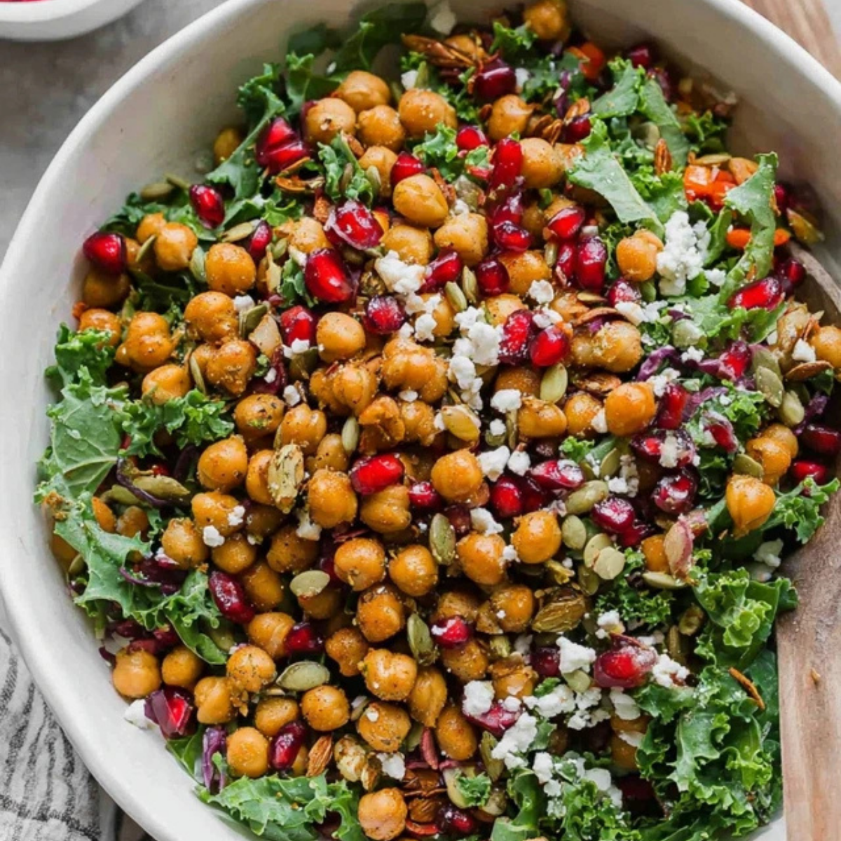 This Roasted Chickpea Fall Salad is a hearty, flavorful dish combining crispy roasted chickpeas, crunchy kale, sweet dried cranberries, and fresh pomegranate arils. Perfect for autumn with its seasonal spices and textures, it’s a healthy, vegan, and gluten-free salad that makes a great main or side dish.